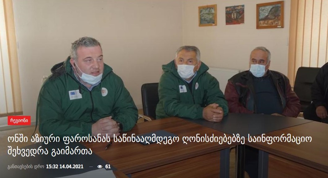 ჭიათურა,ხობი,ოზურგეთი,თერჯოლა,ზესტაფონი , სამტრედია სენაკის მუნიციპალიტეტში საკოორდინაციო მართვის ცენტრის წარმომადგენლებმა, სურსათის ეროვნული სააგენტოს წარმომადგენლებთან და მეფუტკრე-ფერმერებთან ერთად, აზიური ფაროსანას საწინააღმდეგოდ დაგეგმილი ღონისძიებების შეხვედრებს აქტიურად განაგრძობენ
